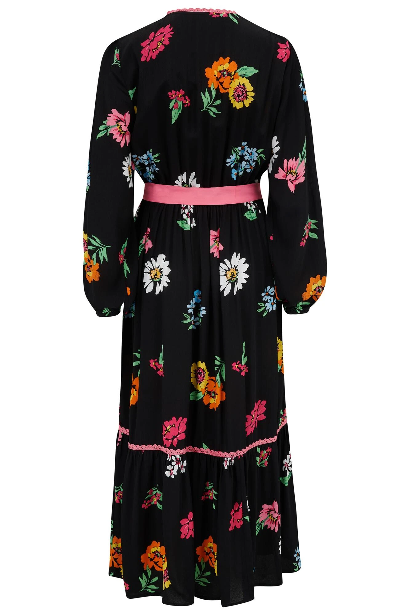 Make an entrance in the Amara Wrap Front Midi Dress. With a flattering elasticated shirred waist and adorned with frill detailing and shirred cuffs this feminine and playful style makes the perfect choice for any occasion. Feel comfortable all day in this midi dress with fixed wrap front. We take the impact that our business has on the planet seriously that is why our Amara Wrap Front Midi Dress is made from recycled materials.