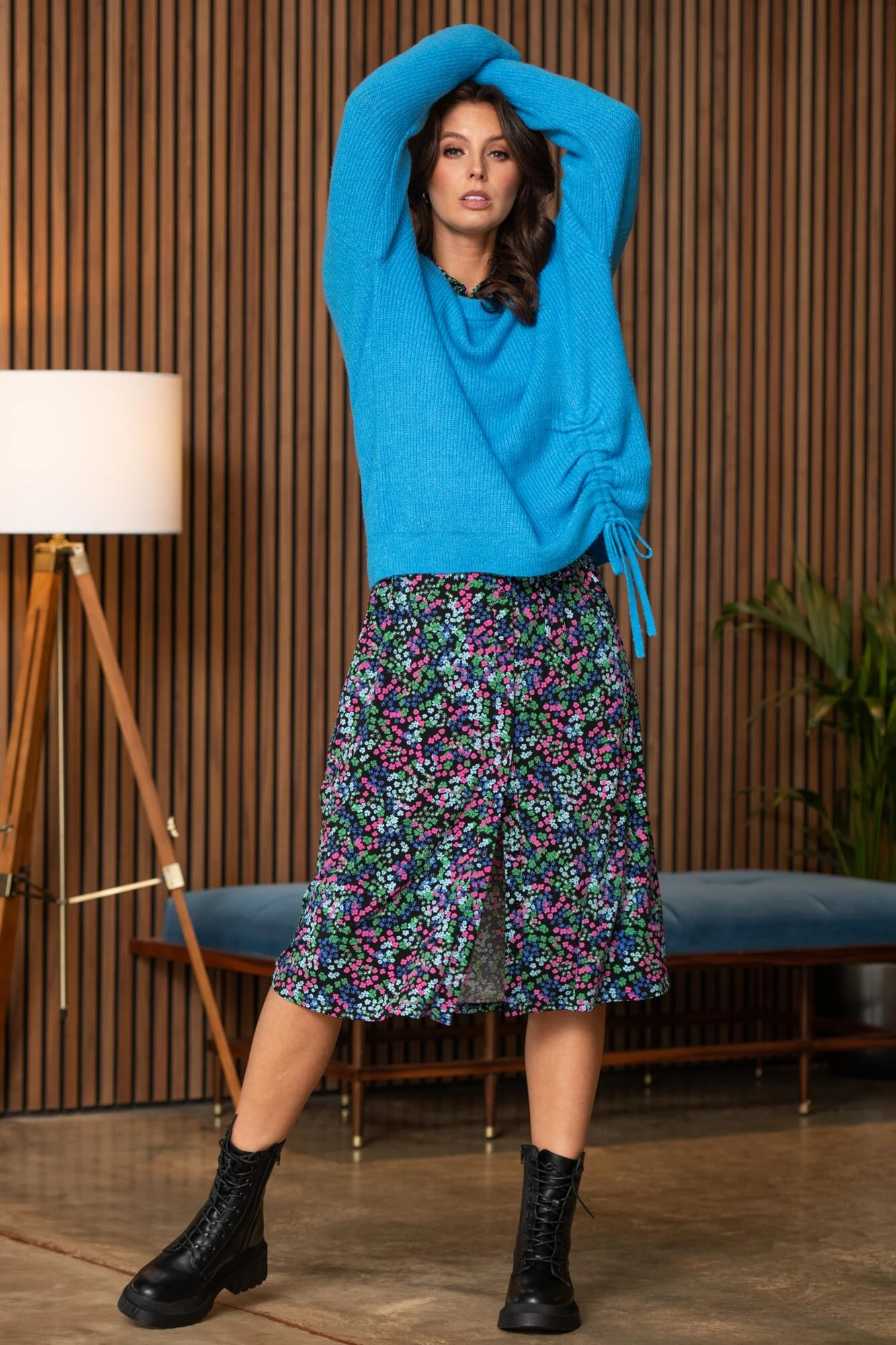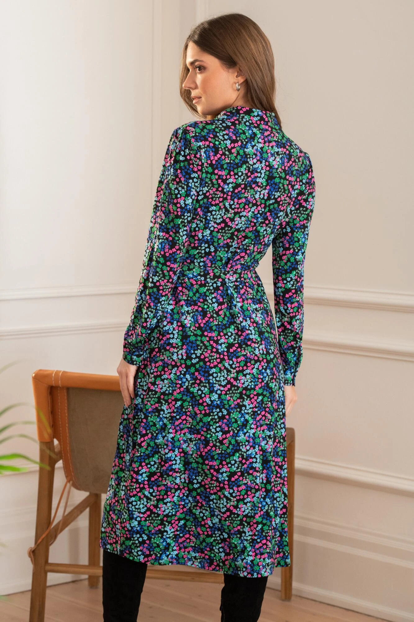 Comfortable and stylish, you cannot go wrong in the Bailey Slinky Jersey Midi Shirt Dress. Designed with D+ in mind, so you can feel comfortable, supported and stylish all day long. This long sleeve button through shirt dress is finished with cuff button detailing and a fabric belt for ultimate comfort. This midi length style looks great paired with your favourite boots and faux leather jacket. We take the impact that our business has on the planet seriously, that is why the Bailey Slinky Jersey Midi Shirt Dress contains recycled content.Â