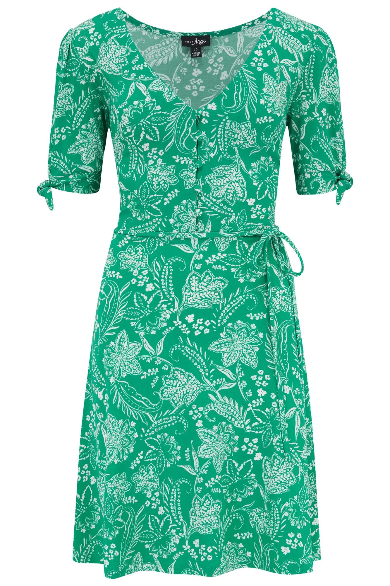 Looking for a light and breathable dress that doesn’t compromise on style? Our Bella Slinky Stretch Tie Sleeve Dress is the one for you! Featuring a feminine all-over print, this dress is designed in a slinky jersey fabric that skims your curves. With a flattering V-neck and front button detail, you won’t need to worry about gaping buttons with some extra room up top. And with an adjustable tie waist and tie sleeve details, this gorgeous dress allows you to alter it to fit your shape and curves. Love to do good as you look good? We take the impact that our business has on the planet seriously, that is why the Bella Slinky Jersey Tie Sleeve Tea Dress contains recycled content.