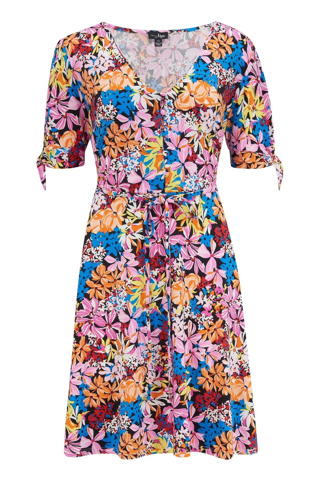 Looking for a light and breathable dress that doesn’t compromise on style? Our Bella Slinky Stretch Tie Sleeve Dress is the one for you! Featuring a feminine all-over print, this dress is designed in a slinky jersey fabric that skims your curves. With a flattering V-neck and front button detail, you won’t need to worry about gaping buttons with some extra room up top. And with an adjustable tie waist and tie sleeve details, this gorgeous dress allows you to alter it to fit your shape and curves. Love to do good as you look good? We take the impact that our business has on the planet seriously, that is why the Bella Slinky Jersey Tie Sleeve Tea Dress contains recycled content.