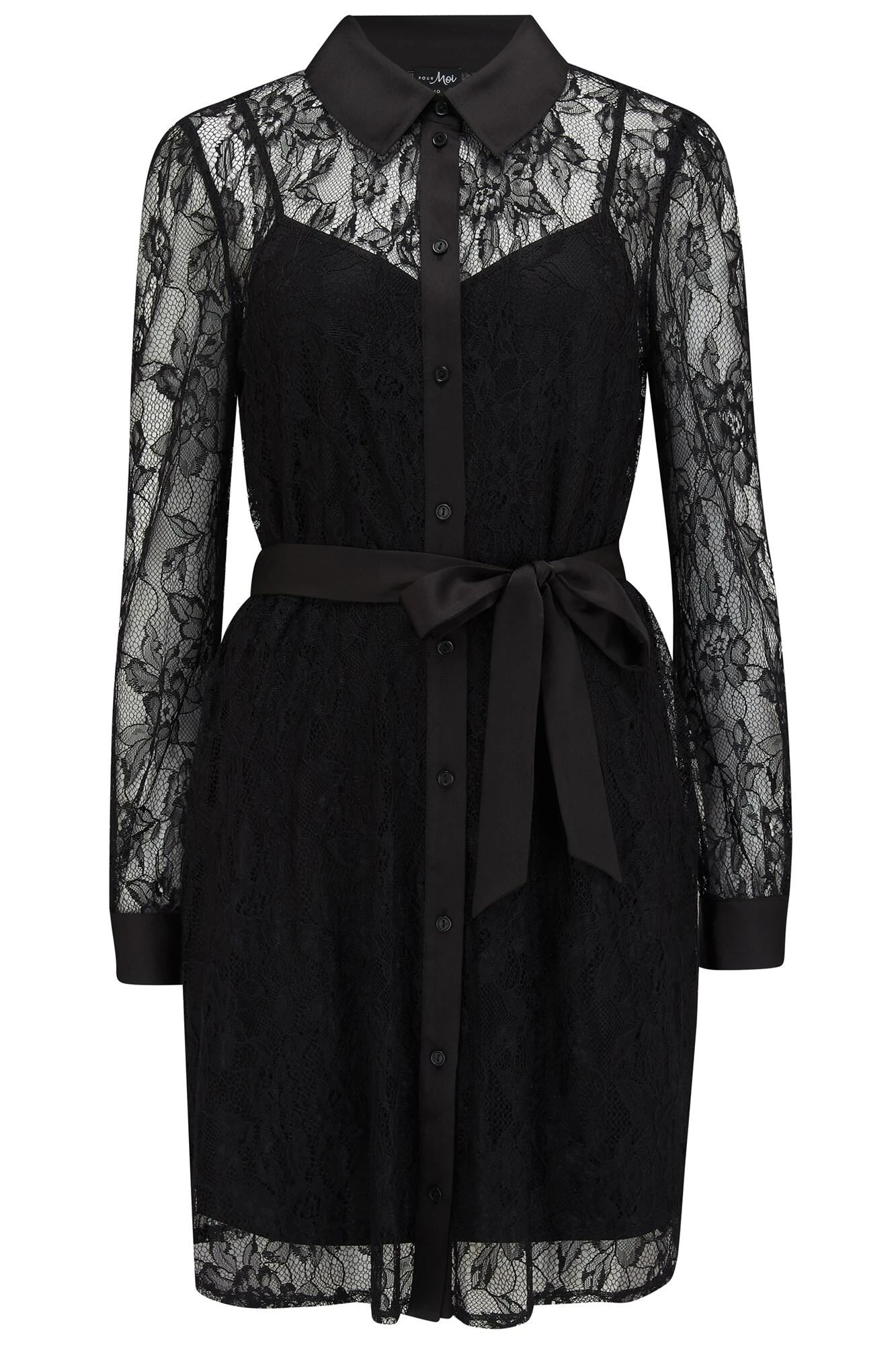 Showcase your style with this sensational shirt dress. Take your LBD game up to glamorous new levels with an abundance of delicate lace – and there’s a cami slip dress included that means you don’t have to worry about what you’ll wear underneath it. In a classic shirt dress button-through style, the satin tie gives it a great shape, while the satin collar and cuffs elevate it even further. Put it on and wait for the compliments!