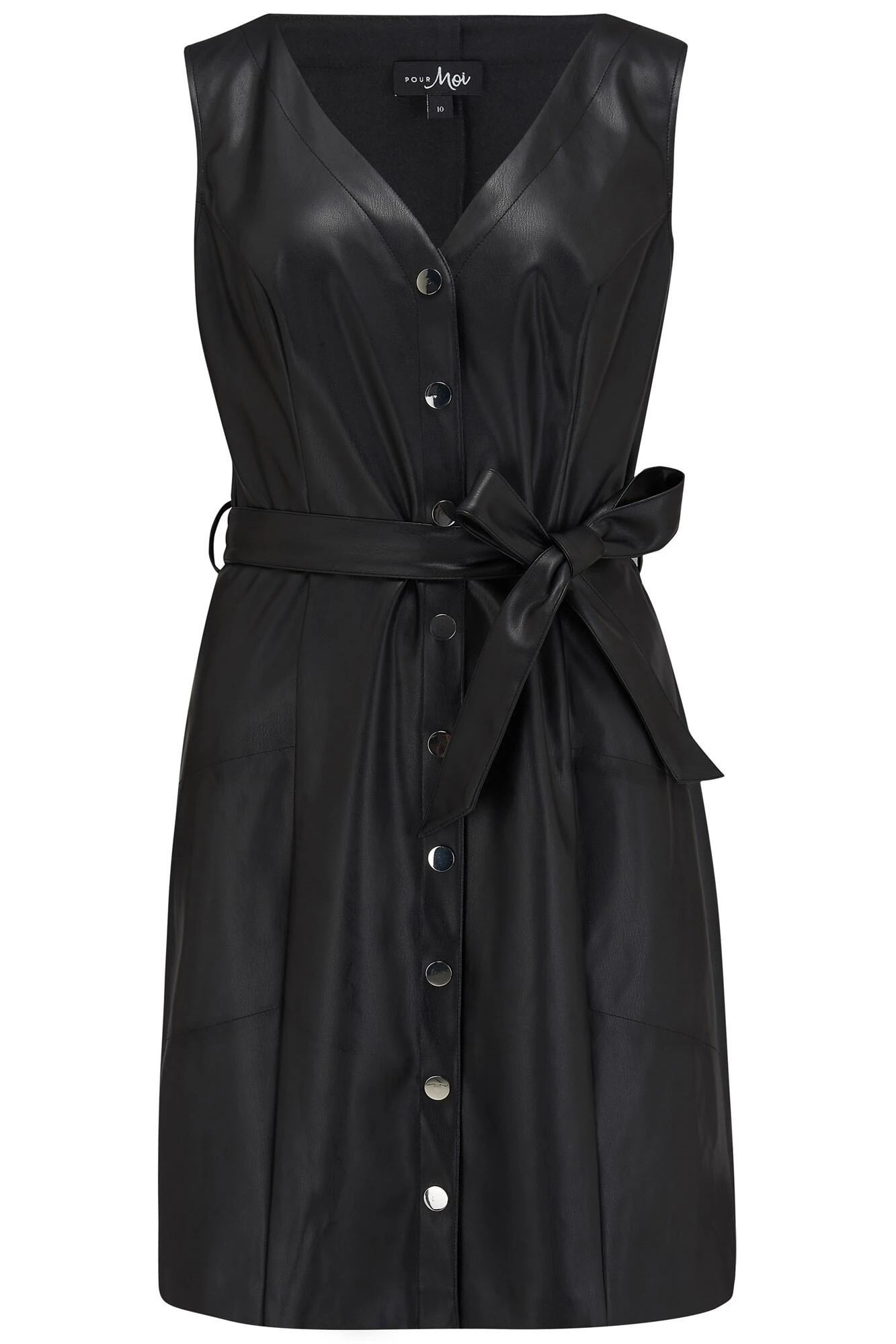 Give your wardrobe a bold update with this on-trend faux leather mini dress. This button through dress is everything you need! Feel fabulous in this flattering and functional PU dress with a self fabric belt and pockets. Style with statement boots for a hella sassy look!