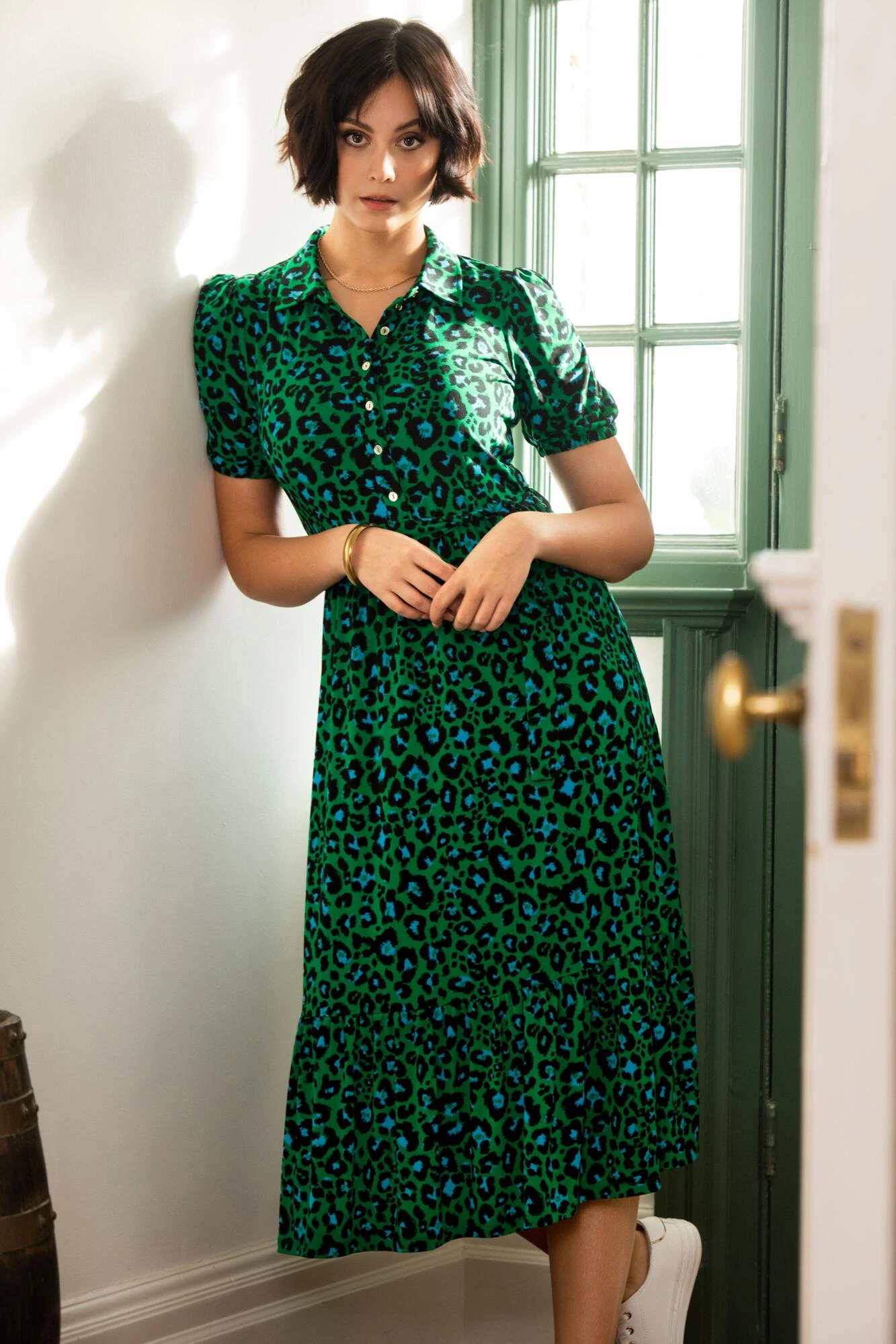 This gorgeous shirt dress cut to a midi length is perfect for any occasion. We’ve added a twist to this classic style with a feminine tiered hem and ruching detail. This short sleeve dress with collar and bodice button closure is designed with our D+ babes in mind so you can feel comfortable, supported and stylish all day long! Style with a pair of white trainers or sandals during the warmer months or knee-high boots when the weather turns colder. We take the impact that our business has on the planet seriously, that is why the Jodie Slinky Jersey Tiered Shirt Dress contains recycled content.
