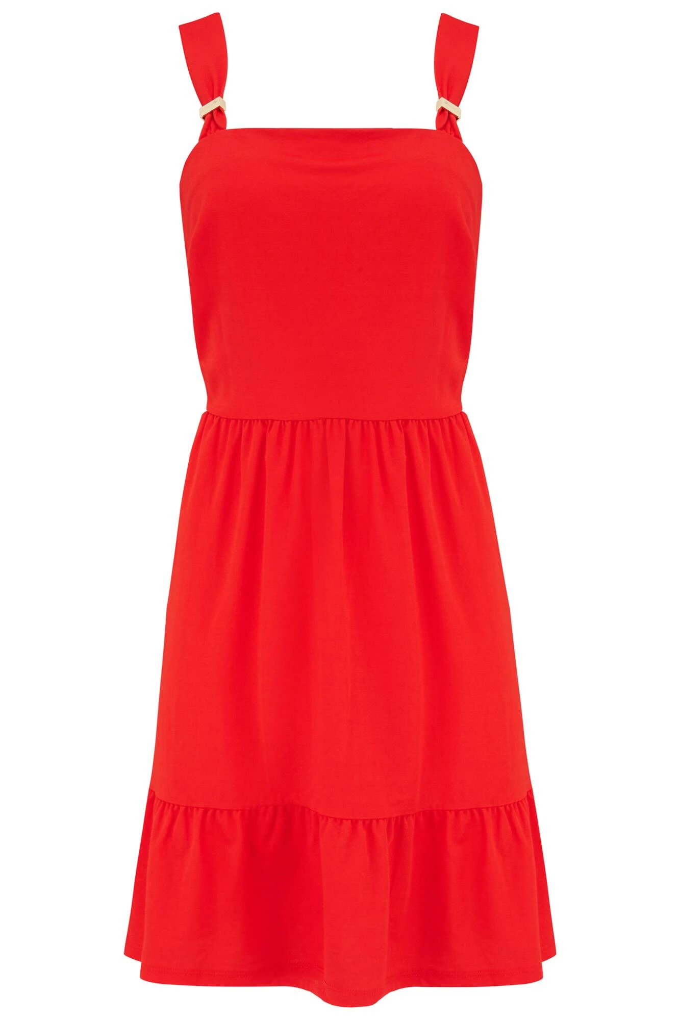 Spend your summer in the sun with the Lena Pique Tiered Dress. Cut to a relaxed fit, this dress in a short length features a flattering tiered skirt and beautiful gold hardware detailing to the straps. Pair with your favourite sandals for a relaxed summer vibe. Designed with D+ babes in mind so you can look fabulous and still feel comfortable and supported. We take the impact that our business has on the planet seriously that is why the Lena Pique Tiered Dress is made from recycled materials.