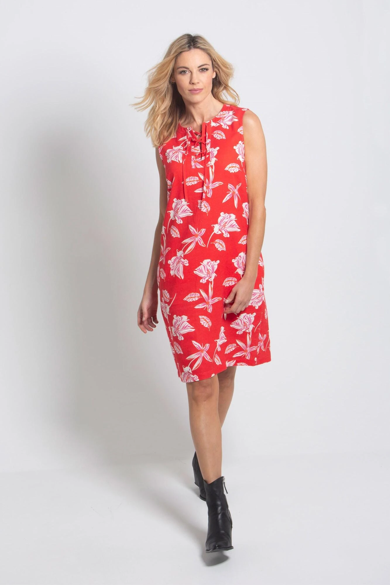 Put a spring in your step with our easy fit, Linen Blend Shift Dress. Featuring a lace up neck detail and pockets at both side seams, this warm-weather staple is designed in a loose shift style to flatter every body shape. Other colours and prints available.