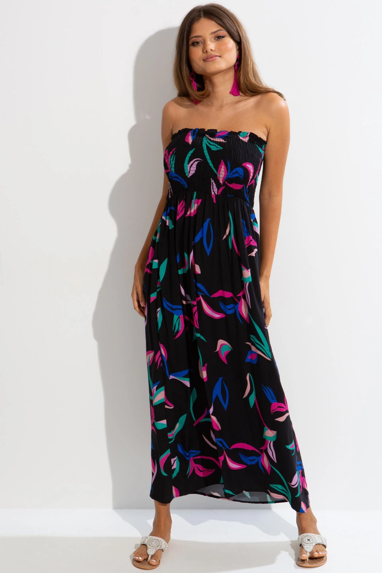 The Removable Straps Shirred Bandeau Maxi Dress is one of our favourites this season and it’s a must-have style for your next getaway! With a shirred bodice design and a maxi dress length, just slip on over your bikini set or swimsuit when you want to catch some shade. You can even remove the straps! Pair it with our matching Mini Maxi swimwear styles for a cute and coordinated look.