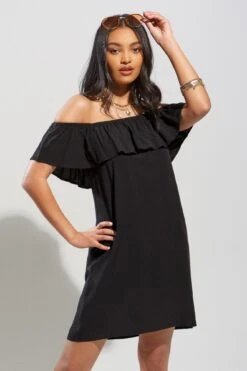 Already one of your favourites! Our Bardot Beach Dress is made from lightweight viscose, and is perfect to throw on over your swimwear. The off the shoulder elasticated Bardot neckline with its soft frill overlay makes it the perfect fit for every body.