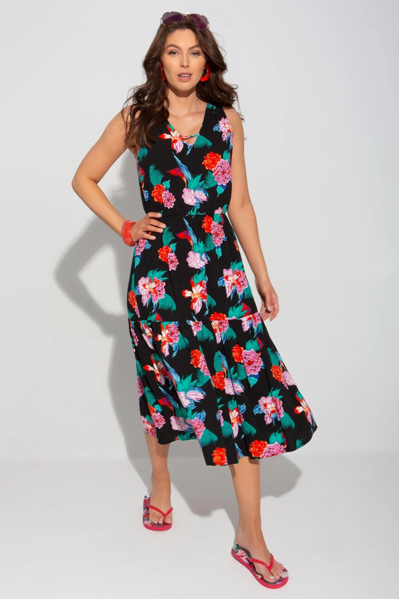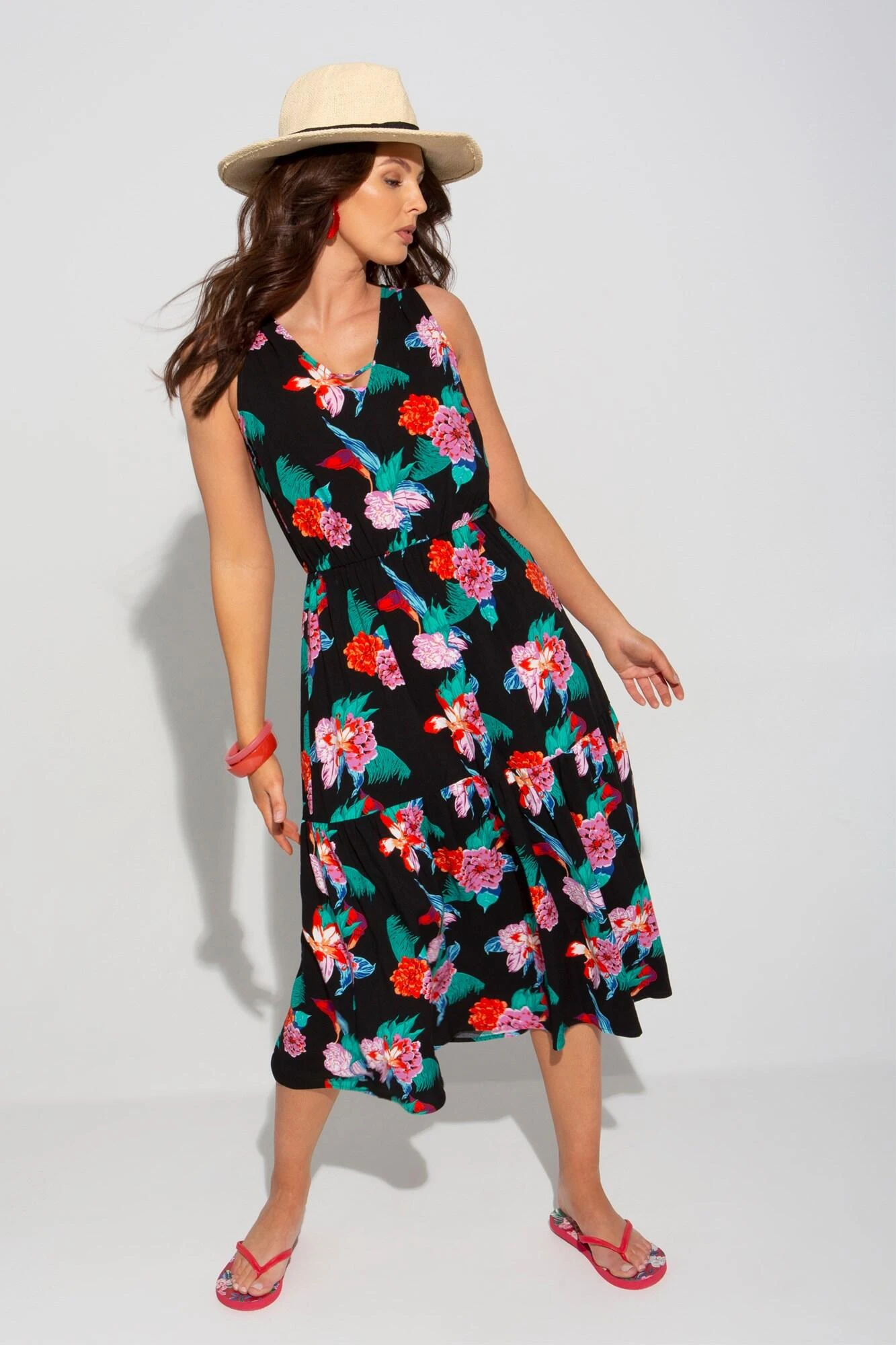 Dreaming of somewhere warm and sandy? This midi beach dress has got you covered. With its sleeveless style, tiered skirt and V-neckline, it’s got those cute retro vibes nailed. Throw it on over your swimwear for a look that takes you from beach to bar, and back again